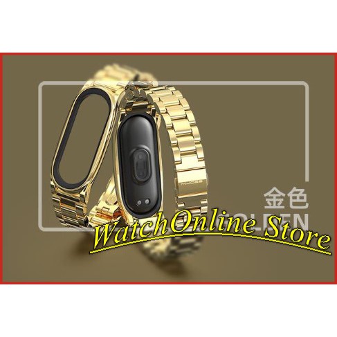 Dây kim loại mắt to Xiaomi Miband 4 Miband 3 Plus - Vàng kim- Hàng sản xuất mijobs