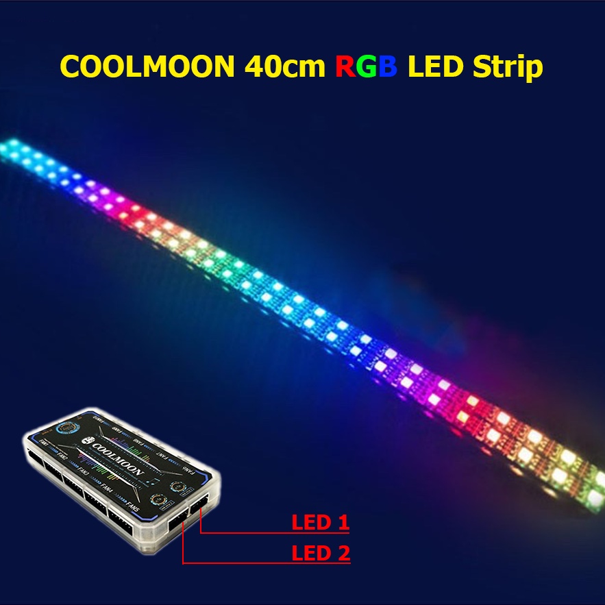 Dây LEDStrip 40cm đồng bộ hiệu ứng với Hub Coolmoon, sản phẩm có đế nam châm lắp đặt dễ dàng, bọc nhựa cách điện an toàn.Một sản phẩm không thể thiếu cho việc trang trí PC yêu của bạn :3
