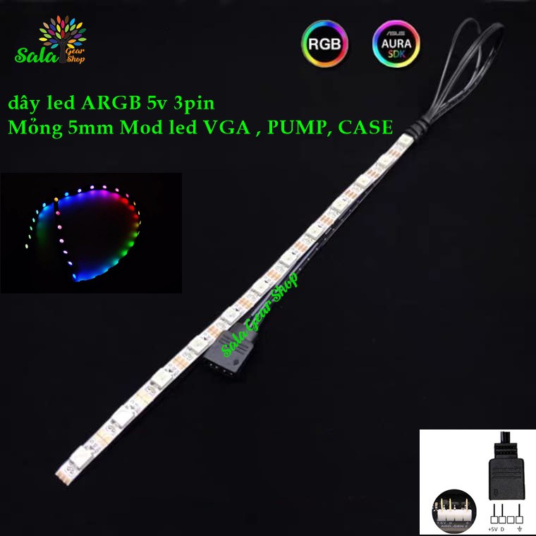 Máy tính & Laptop > Linh Kiện Máy Tính > Nguồn Máy Tính || Dây led RGB Mỏng 5mm dài 20cm 5v 3PinCòn hàng