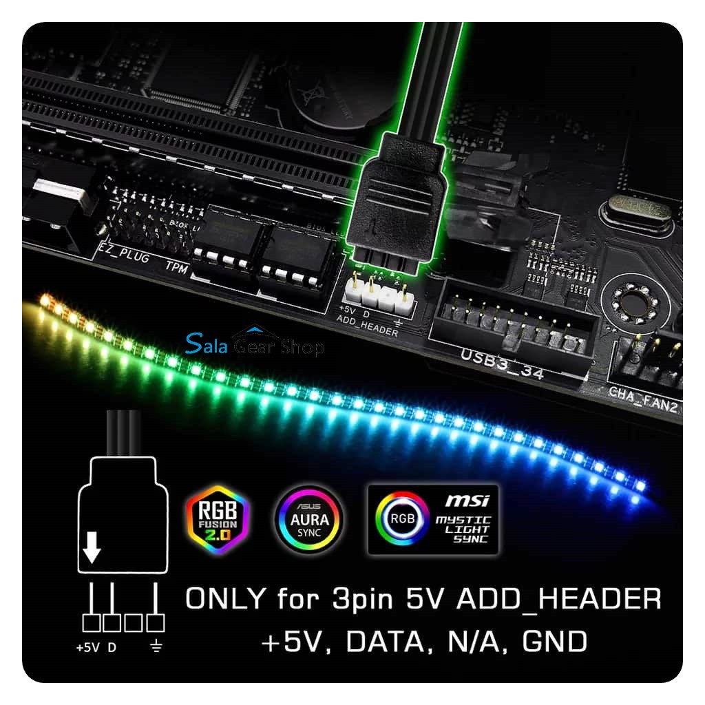LƯUÝ: Không chạm vào bóng led,không cắm công 12v4pin có thẩy cháy dây, tương thích với cổng 5v3Pin trên main Hoặc Hub