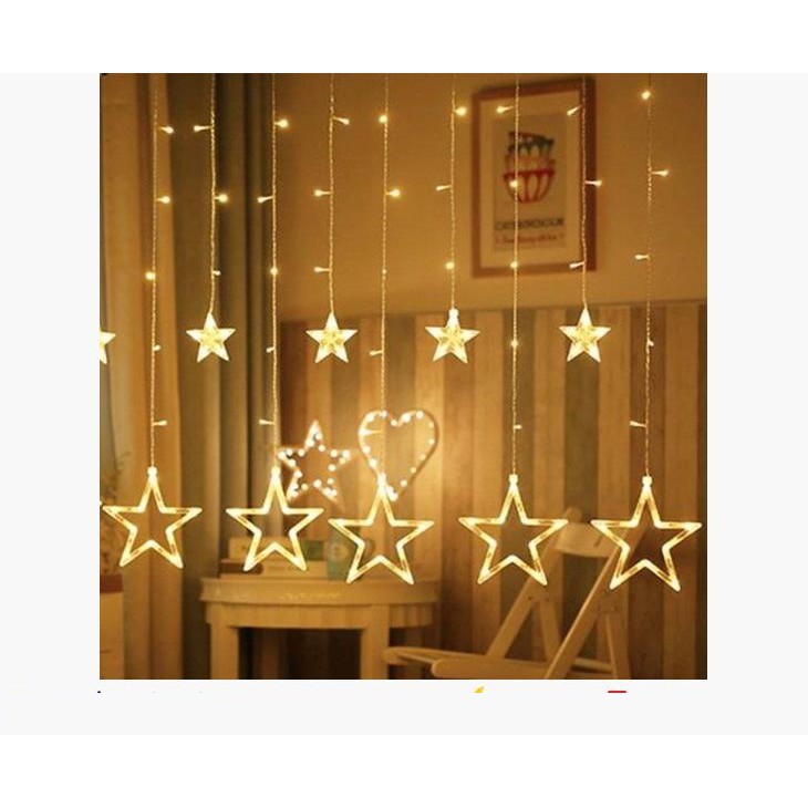 Nhà cửa & Đời sống > Trang trí nhà cửa > Rèm cửa, màn che || Dây led trang trí hình ngôi sao 3 mét 138 dạng rèm ánh sáng vàngCòn hàng