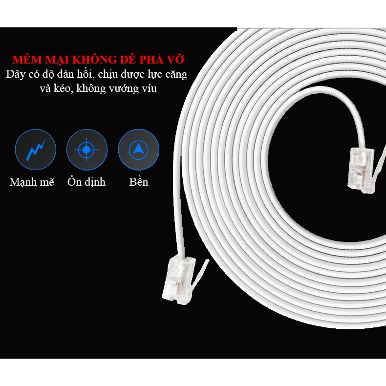 Dây line điện thoại bấm sẵn 2 đầu JSJ-202 dài 2m đến 5m dây có độ đàn hồi chịu được lực căng và kéo không vướng