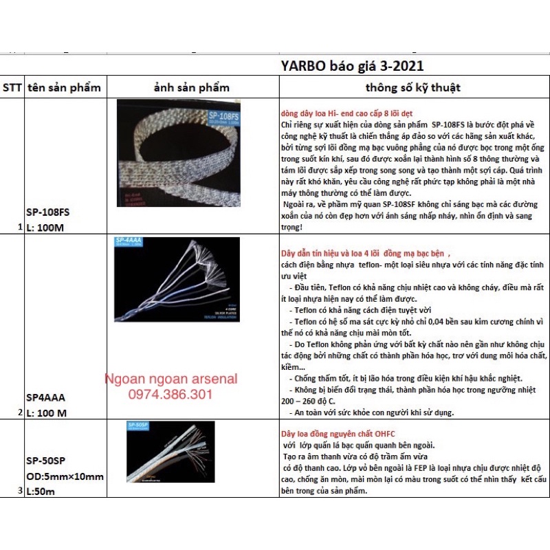 Giới thiệu Dây loa dẹt siêu cao cấp bạc quấn đồng nhập khẩu hãng YARBO Germany mã SP-50SP
