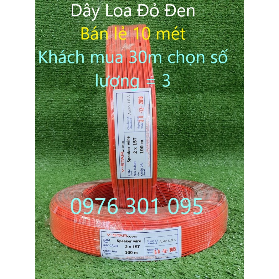Dây Loa Đỏ Đen 2x15 Tim [ Bán Lẻ 10m ]