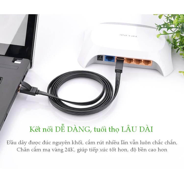 Dây mạng 2 đầu đúc Cat6 UTP dây dẹt NW104 là sản phẩm chính hãng UGREEN