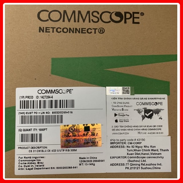 Giới thiệu Dây Mạng COMMSCOPE (AMP) Cat6 UTP Cáp mạng chuyên công trình, dự án - Chính hãng