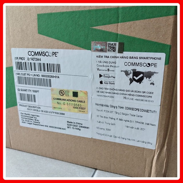 Máy tính & Laptop > Thiết Bị Mạng > Khác || [Mã 273ELHA100K0 hoàn 7% đơn 500K] Dây Mạng COMMSCOPE (AMP) Cat6 UTP Cáp mạng chuyên công trình, dự án - Chính hãngCòn hàng