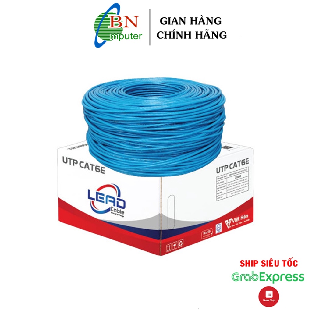 Dây mạng Lan Cat 6E Việt Hàn LEAD UTP 25AWG lõi đồng nhựa PVC nguyên sinh, dài 305m/cuộn