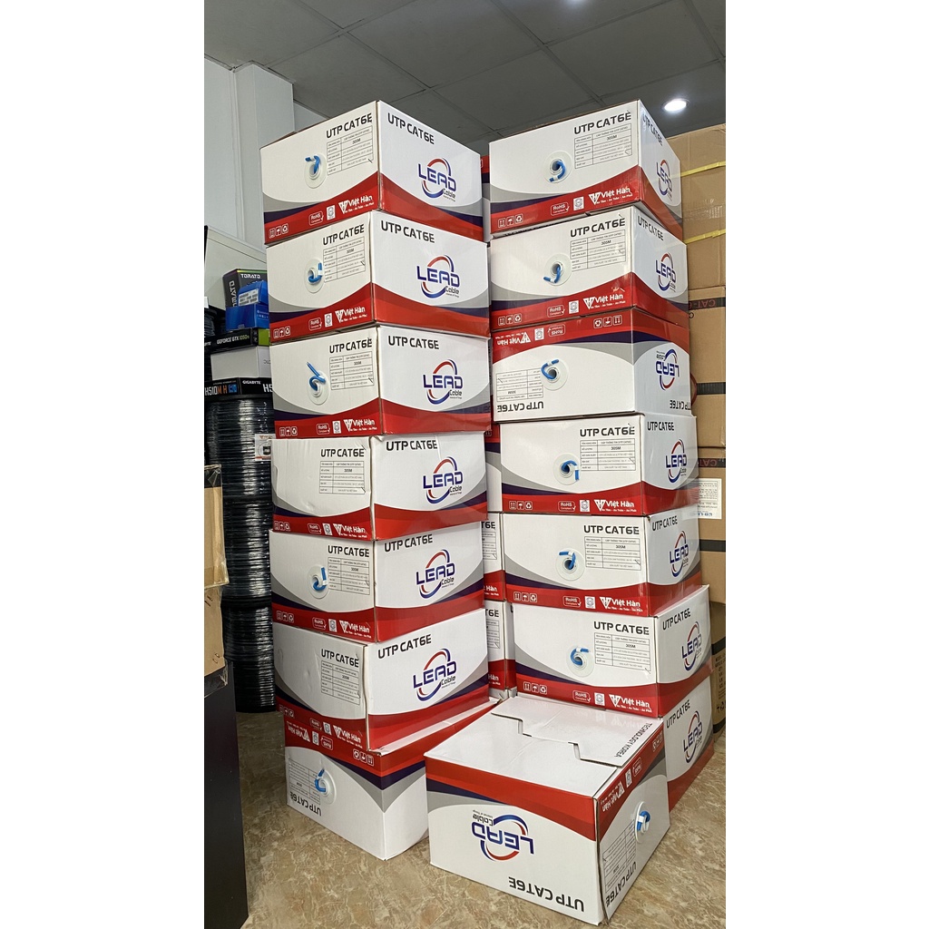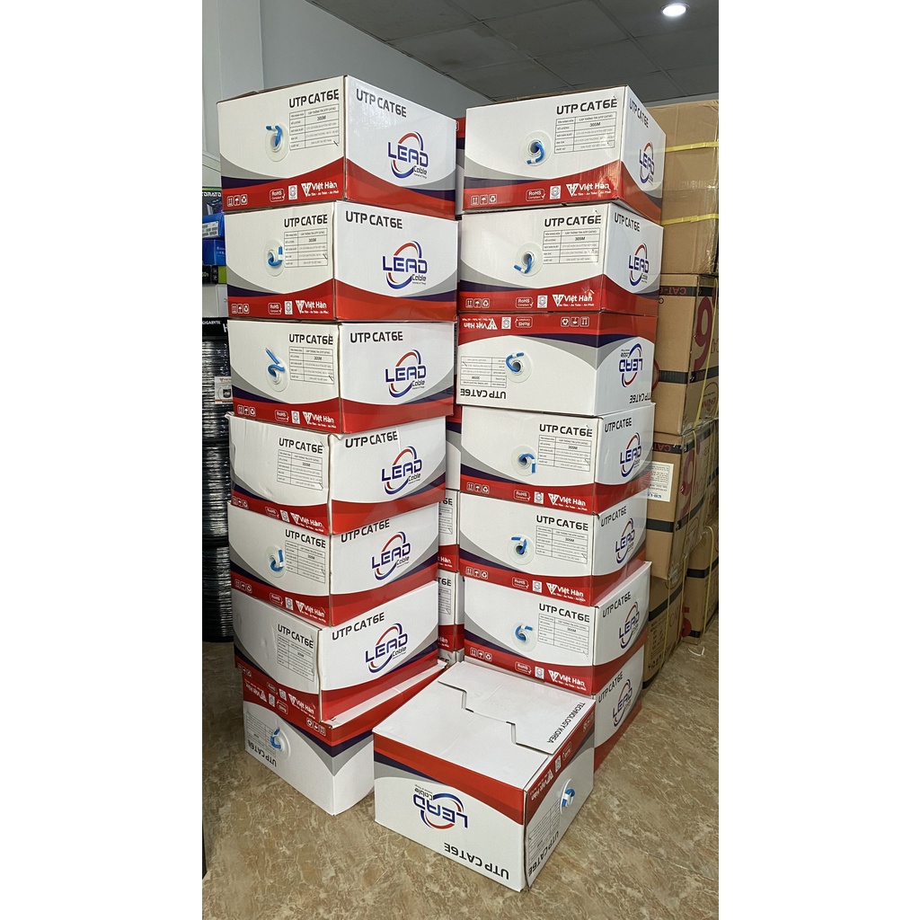 Máy tính & Laptop > Thiết Bị Mạng > Khác || Dây mạng Lan Cat 6E Việt Hàn LEAD UTP 25AWG lõi đồng nhựa PVC nguyên sinh, dài 305m/cuộnCòn hàng