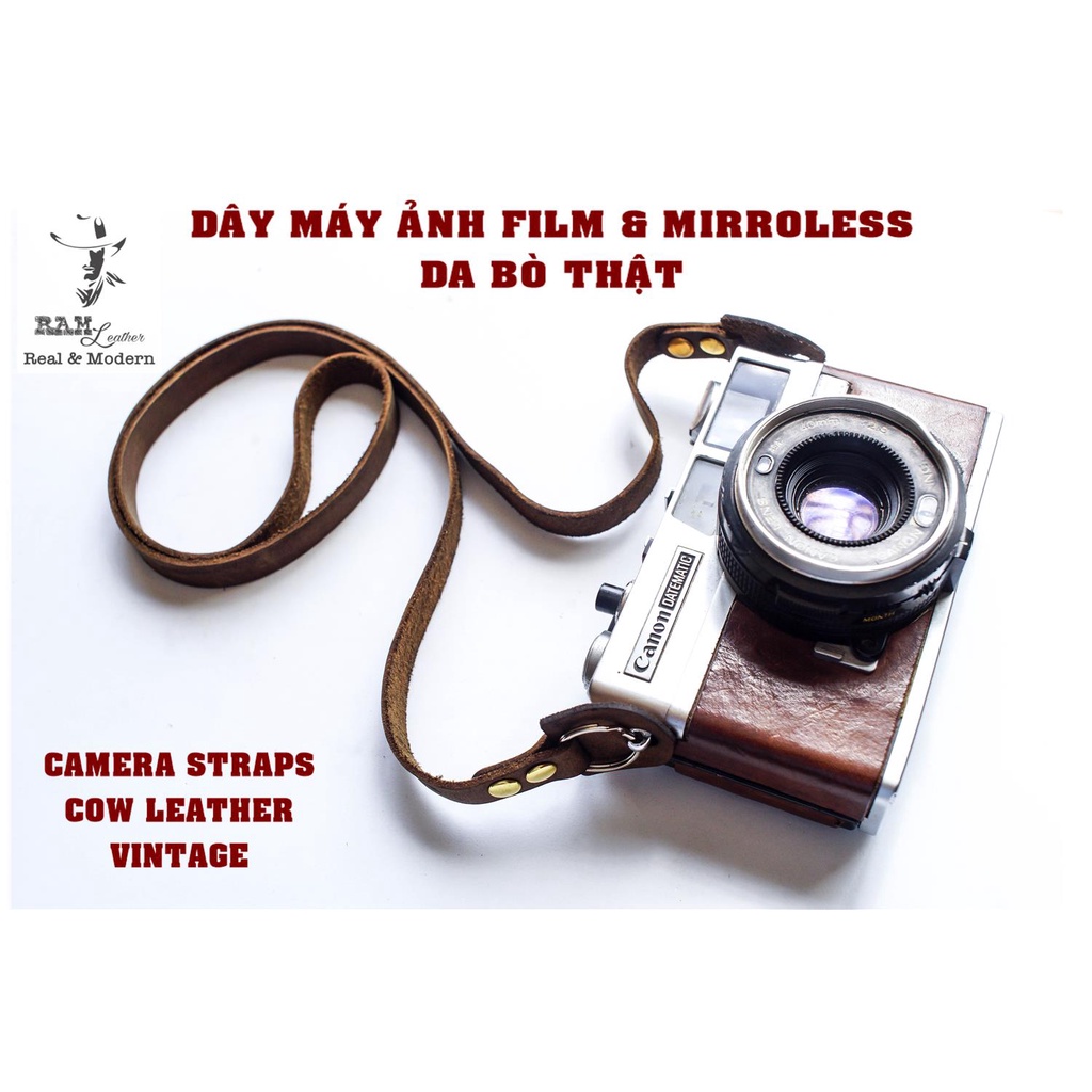 Dây máy ảnh vintage RAM Leather da bò thật máy film và mirroless thanh lịch vintage