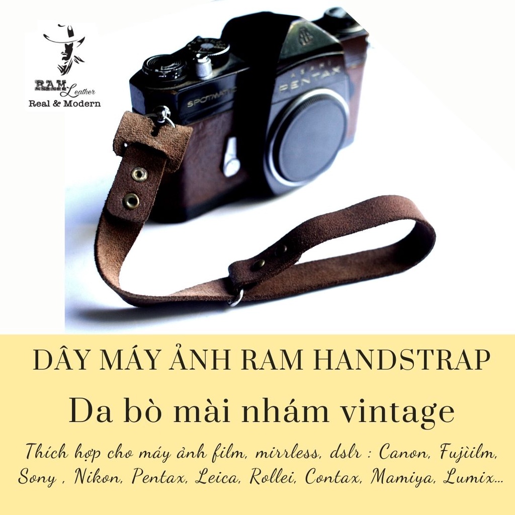 Cameras & Flycam > Phụ kiện máy ảnh > Khác || Dây máy ảnh da bò thật handmade mài nhám bền chắc cực đẹp RAM Leather handstrapCòn hàng