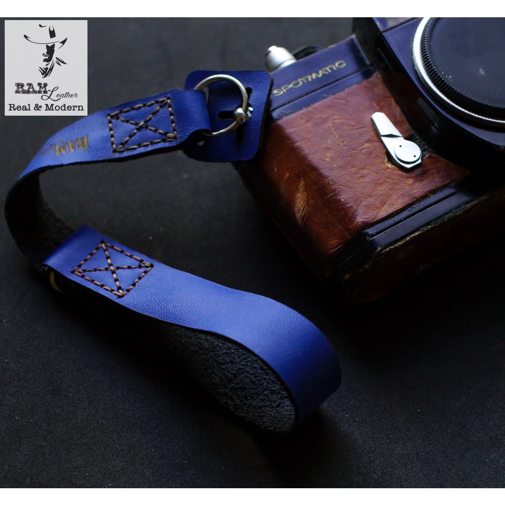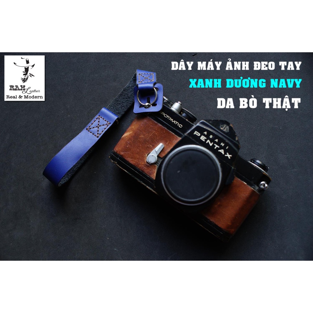 Cameras & Flycam > Phụ kiện máy ảnh > Khác || Dây máy ảnh da bò thật handmade bền chắc cực đẹp RAM Leather handstrap xanh navyRAM Leather leaherCòn hàng