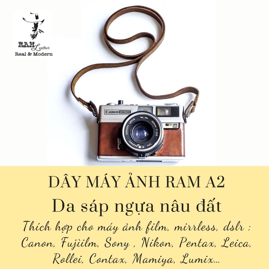 Cameras & Flycam > Phụ kiện máy ảnh > Khác || Dây máy ảnh da bò thật handmade bền chắc cực đẹp RAM Leather a2 taylor nâu đất vintage tặng khóa chốt và cây thay dâyCòn hàng