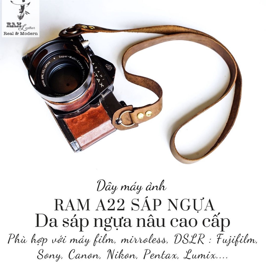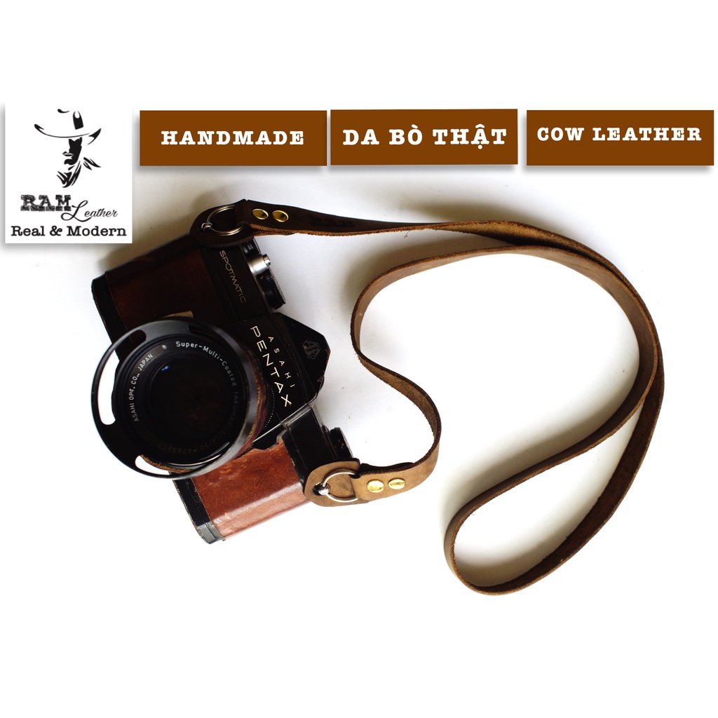Cameras & Flycam > Phụ kiện máy ảnh > Khác || Dây máy ảnh da bò thật handmade bền chắc cực đẹp RAM Leather a22 sáp ngựa RAM LeatherCòn hàng
