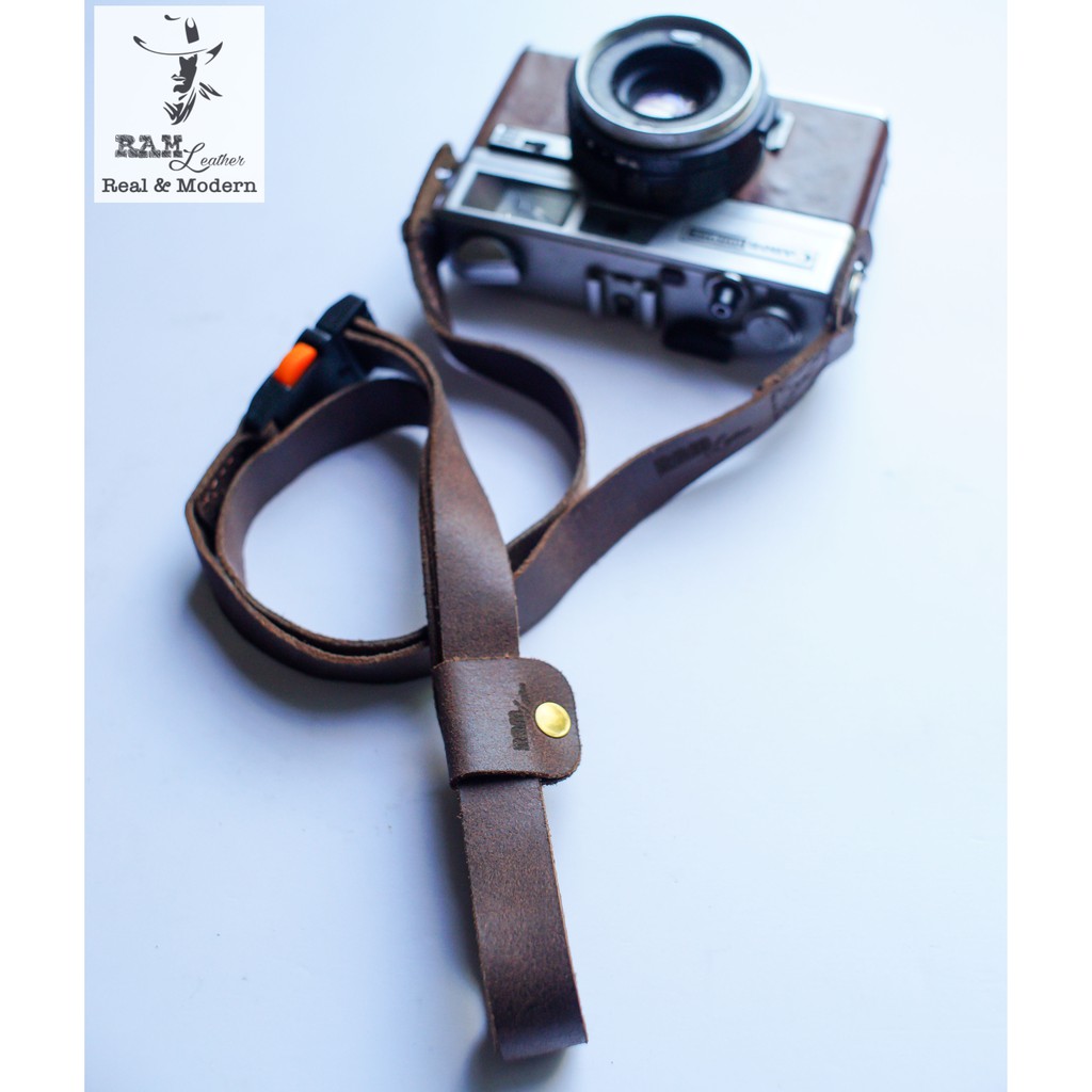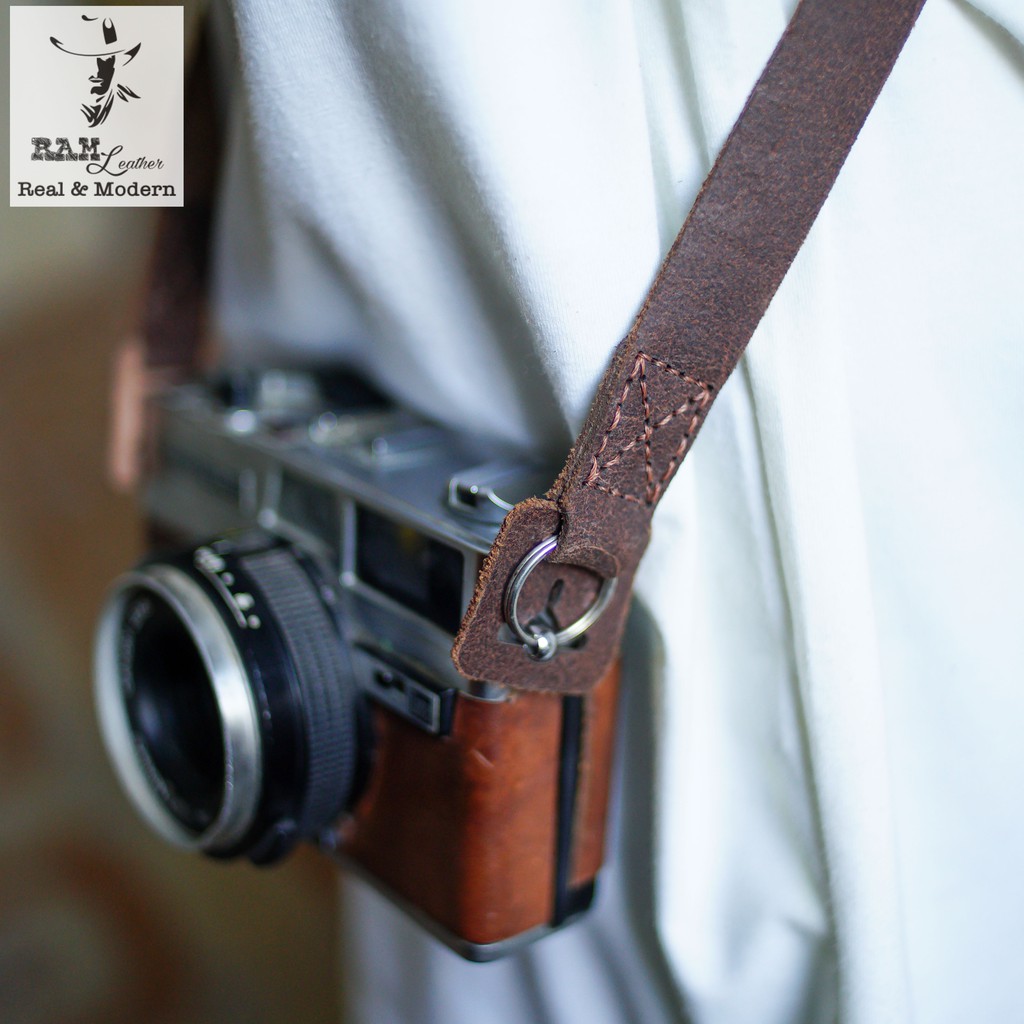 Cameras & Flycam > Phụ kiện máy ảnh > Khác || Dây máy ảnh da bò thật handmade bền chắc cực đẹp nâu đất RAM Leather A33Còn hàng