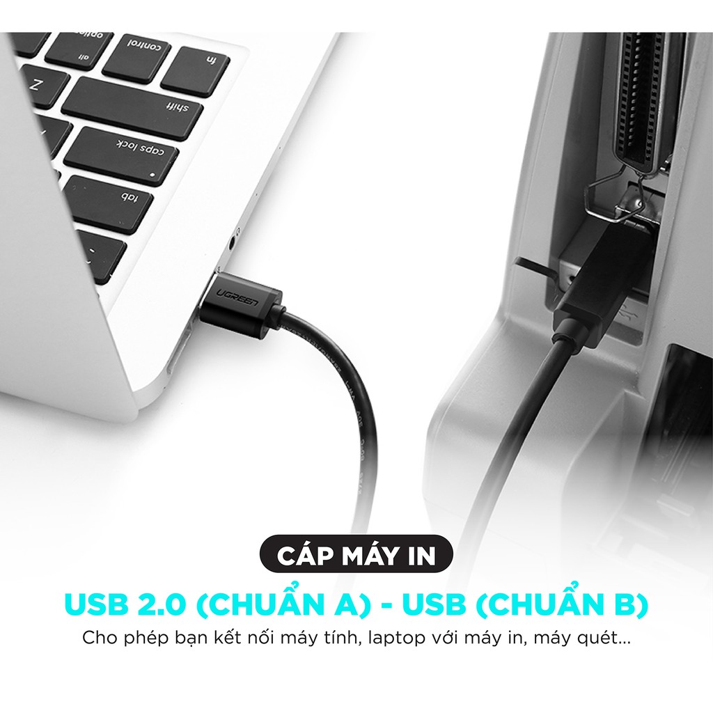 Giới thiệu Dây máy in USB 2.0 chuẩn A đực sang chuẩn B đực dài từ 1-5m UGREEN US135 - Hàng phân phối chính hãng