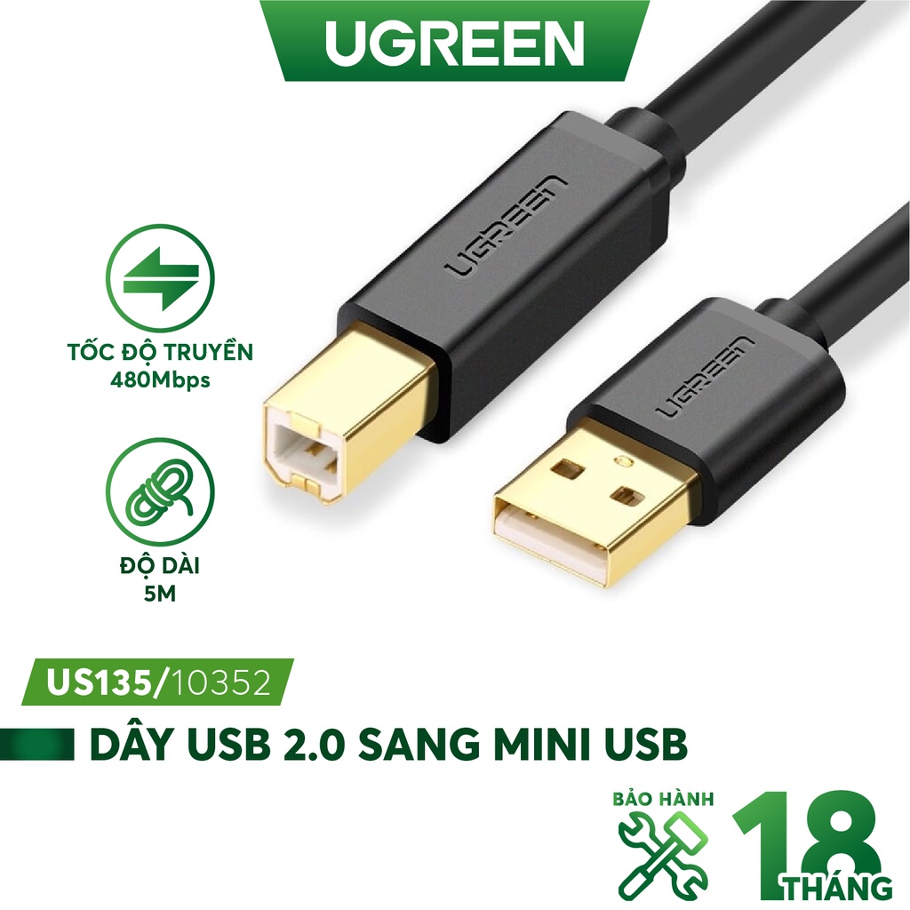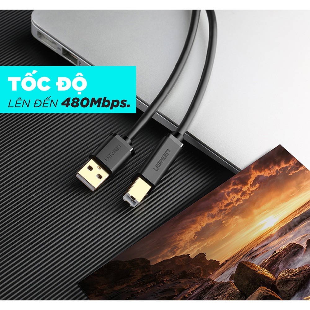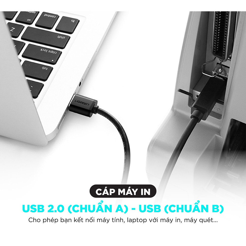 👉 TÊN SẢN PHẨM: Dây máy in USB 2.0 chuẩn A đực sang chuẩn B đực độ dài từ 1-5m UGREEN US135📌 THÔNG TIN SẢN PHẨM