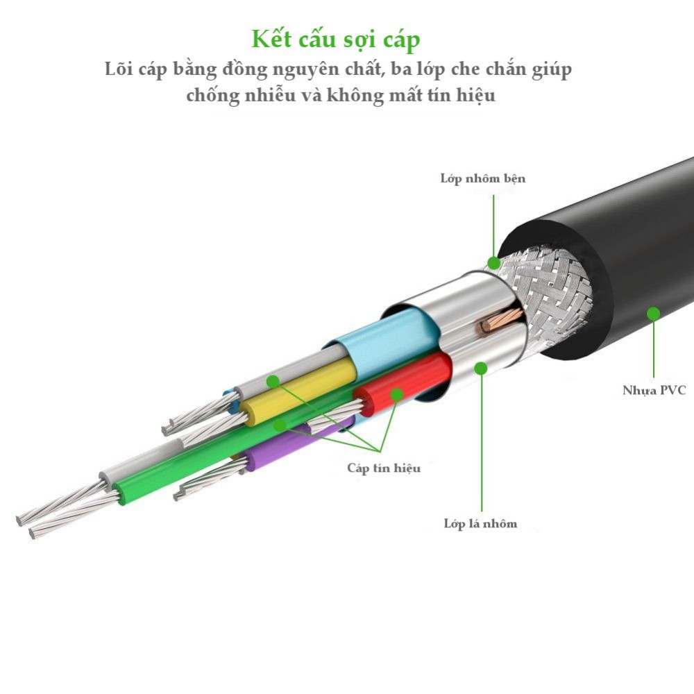 Đầu cáp mạ vàng tăng khả năng tiếp xúc và chống oxy hóa