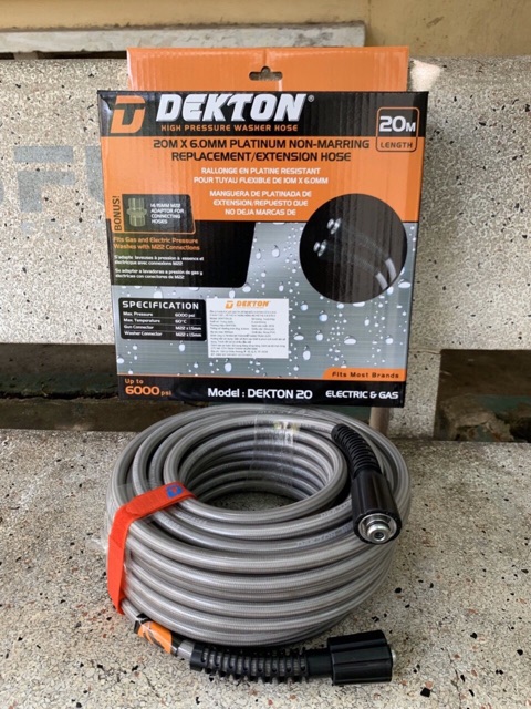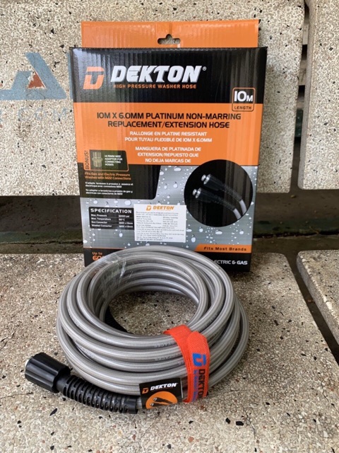 Dây rửa xe Dekton là dây có thương hiệu trên thị trường, là phụ kiện không thể thiếu đi kèm với máy rửa xe máy, máy rửa ô tô. Với đặc điểm nước ta làm nông nghiệp nhiều, máy rửa xe còn được đông đảo bà con sử dụng thể phun thuốc trên nương, các trang trại. Vì vậy mà nhu cầu về dây rất cao, đặc biệt cần các loại dây chất lượng, khả năng chịu áp suất cao, thời gian sử dụng lâu dài.