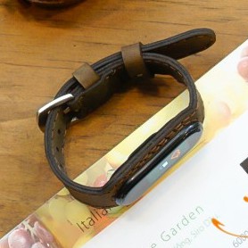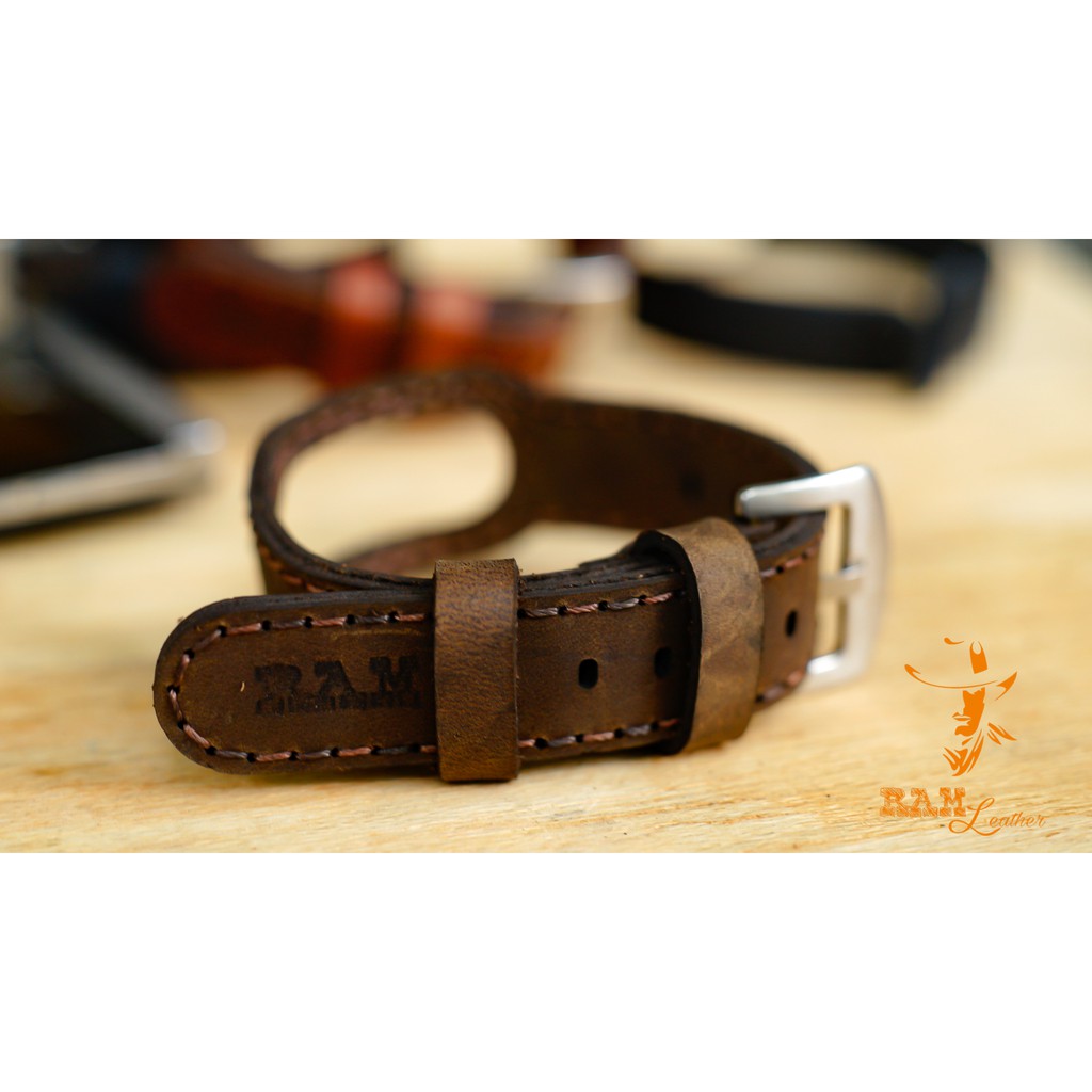 Dây miband RAM Leather da bò nâu đất cao cấp cho miband 3 , miband 4 , miband 5, miband 6