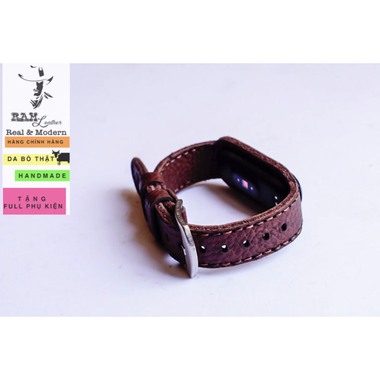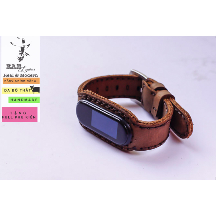 Dây miband da bò thật handmade bền chắc cao cấp cho miband 3 , miband 4 , miband 5, miband 6 RAM Leather