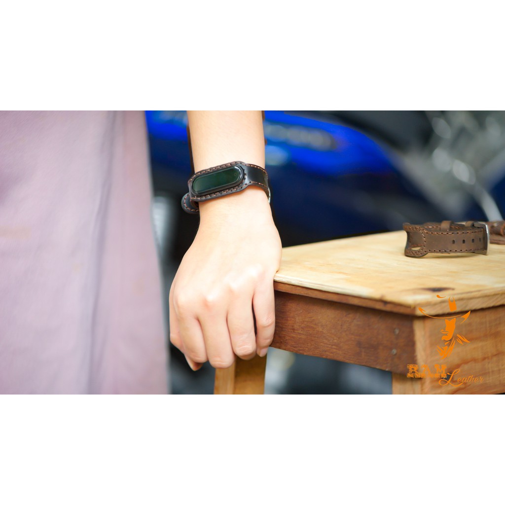 Dây miband 3 , miband 4 , miband 5, miband 6 da bò đen tuyền - RAM Leather