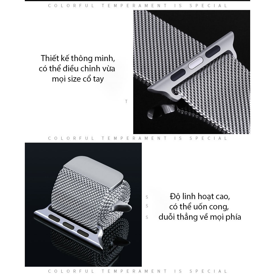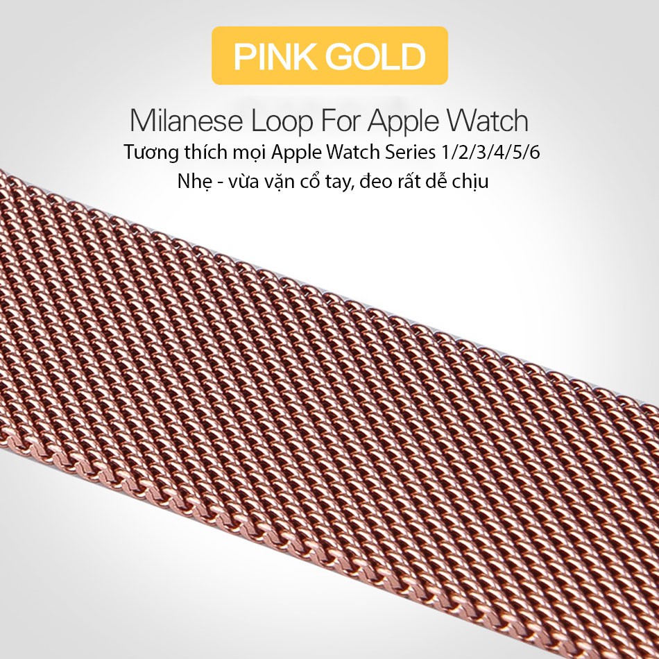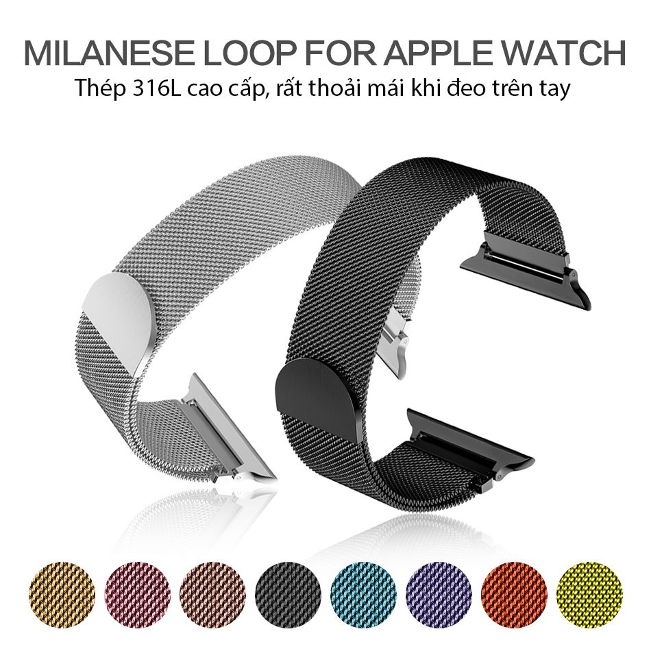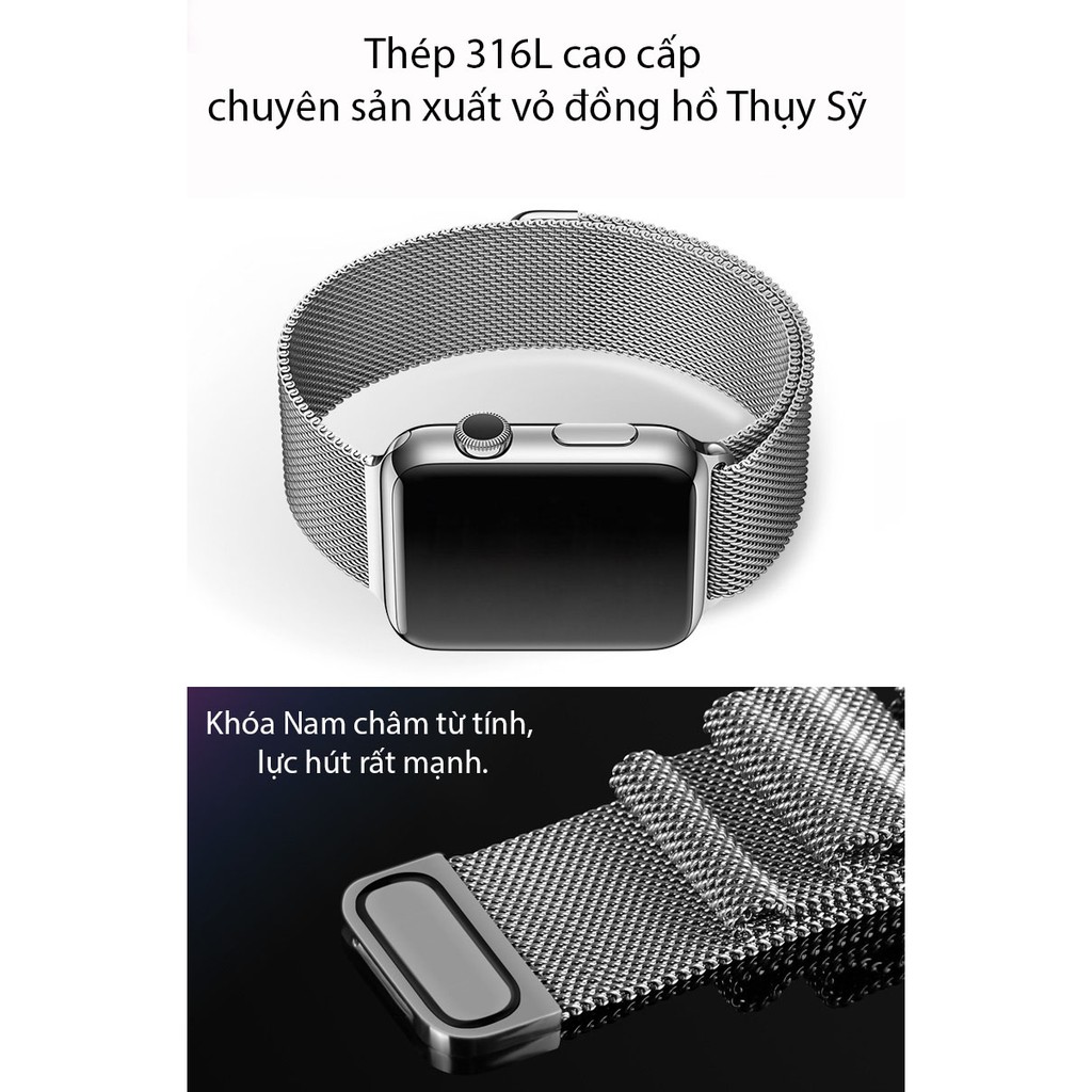 Dây milanese loop cho apple watch, khóa nam châm magnet, làm từ thép không gỉ 316L series 1-2-3-4-5-6