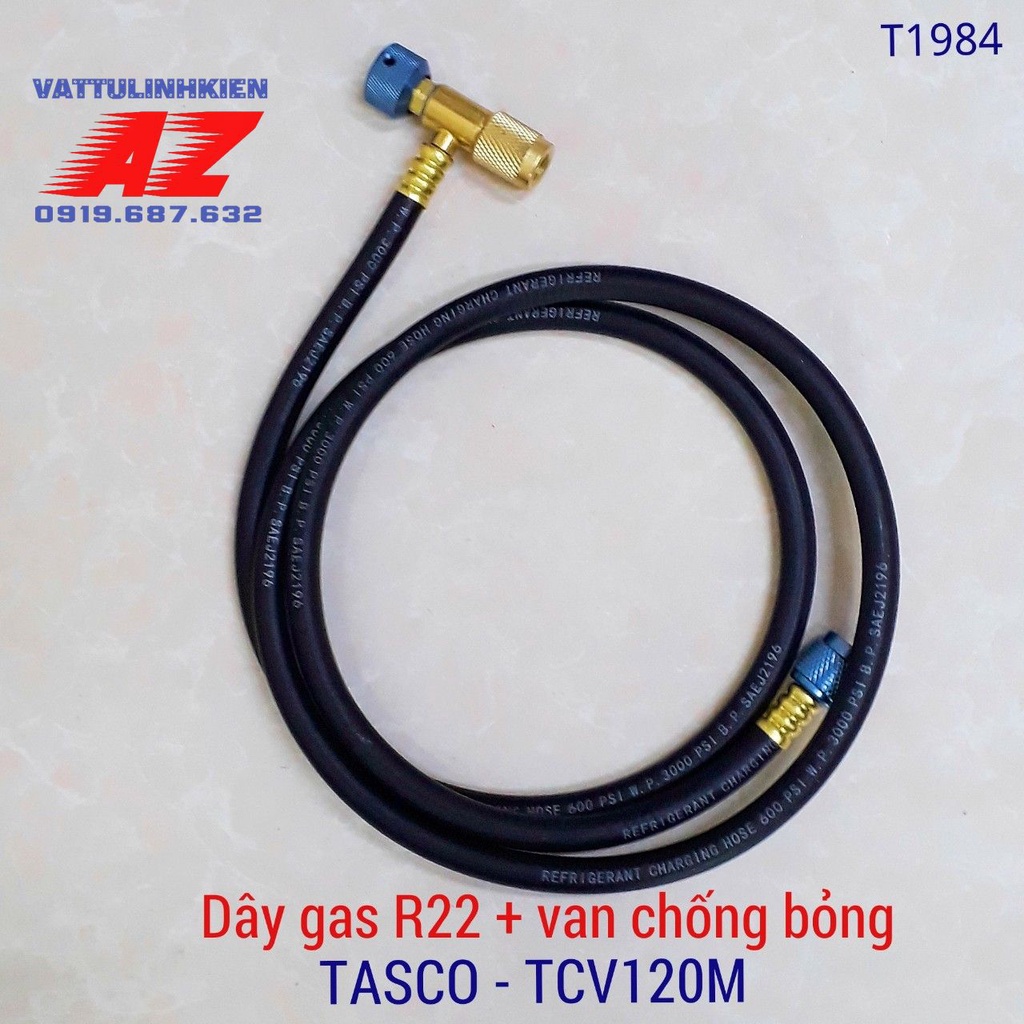 Nhà cửa & Đời sống > Dụng cụ & Thiết bị tiện ích > Dụng cụ > Dụng cụ đo lường || Dây nạp gas TASCO - TCV120M tích hợp van chống bỏng Gas R22Còn hàng