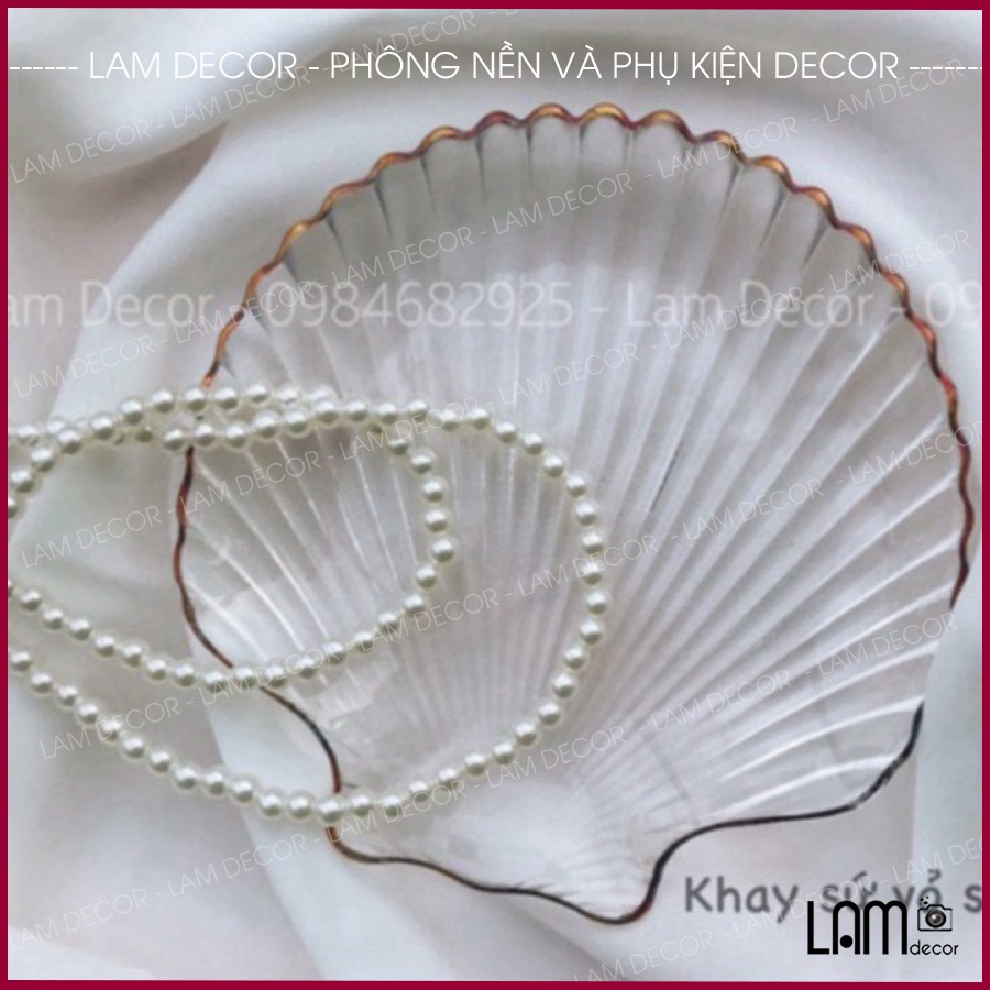 Đĩa sứ hình vỏ trai và dây ngọc trai làm phụ kiện trang trí🔅𝐋𝐚𝐦 𝐃𝐞𝐜𝐨𝐫 - 𝐏𝐡𝐨̂𝐧𝐠 𝐍𝐞̂̀𝐧, 𝐏𝐡𝐮̣ 𝐊𝐢𝐞̣̂𝐧 𝐂𝐡𝐮̣𝐩 𝐀̉𝐧𝐡