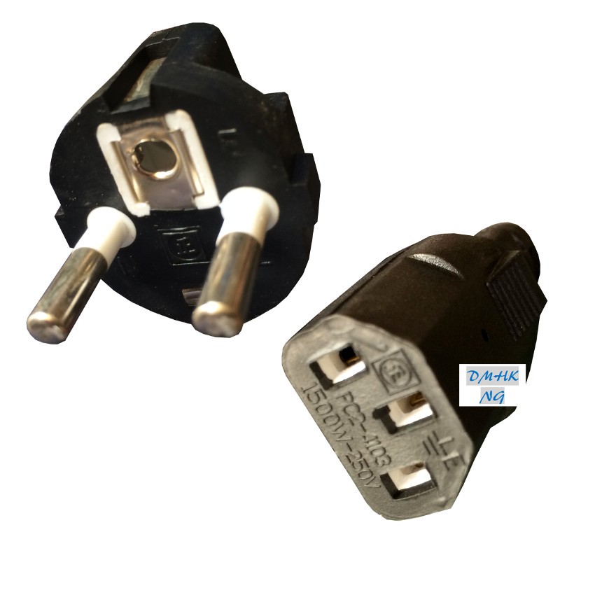 -Chân cắm vào nguồn điện là phích cắm tròn, đầu lớn,