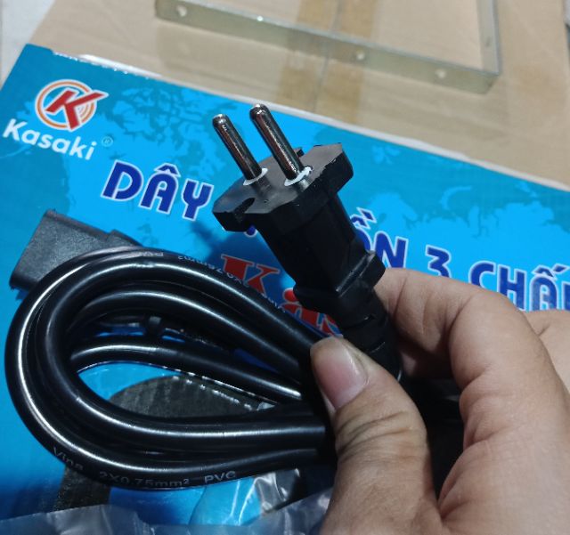 Chân cắm vào nguồn điện là phích cắm tròn, đầu lớn