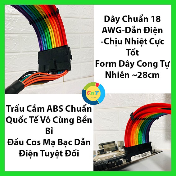 Máy tính & Laptop > Linh Kiện Máy Tính > Nguồn Máy Tính || Dây nguồn bọc lưới nối dài 24Pin- 8Pin-6Pin 4Pin lõi 18AWG (mix màu theo yêu cầu)Còn hàng