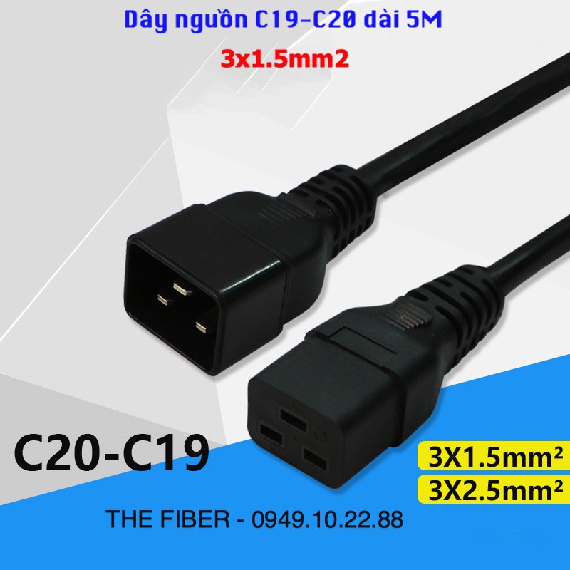 Một đầu dây chuẩn C19, một đầu cắm chuẩn C20