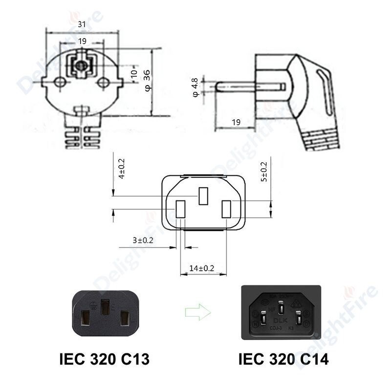 Sản phẩm Tính Năng:100% Thương hiệu Mới Phích cắm EU IEC C13 điện dây cáp