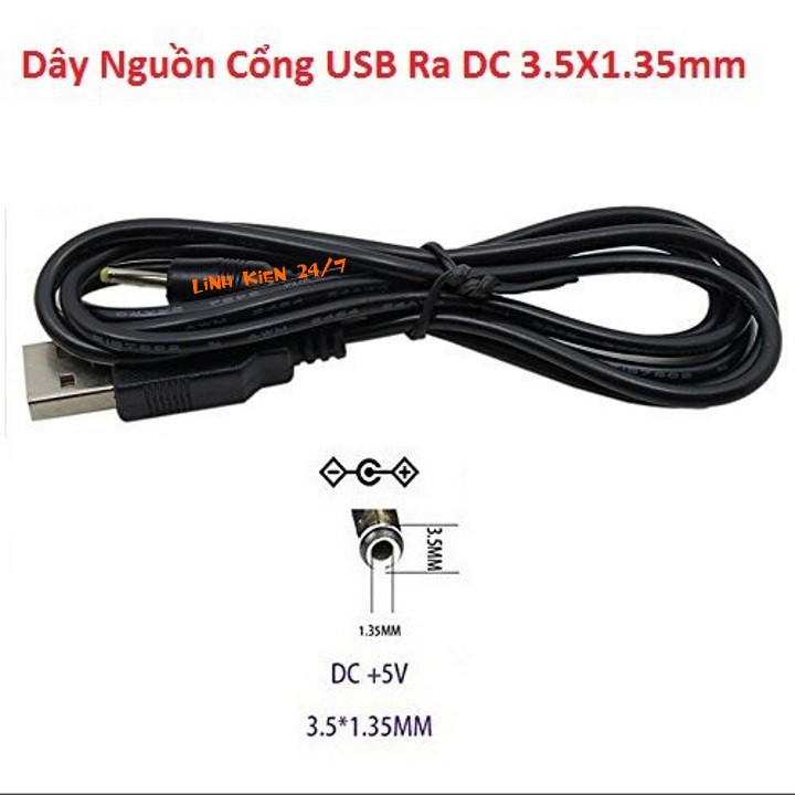 - Kiểu chân: 1 đầu USB, 1 đầu jack DC đực 3.5x1.35mm