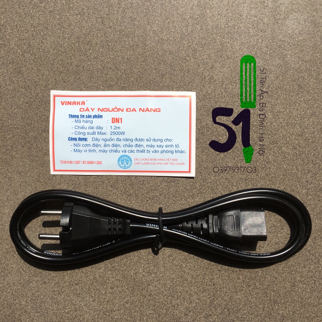 THÔNG TIN SẢN PHẨM- Dây nguồn máy tính/nồi cơm Vinaka – Model: DN1