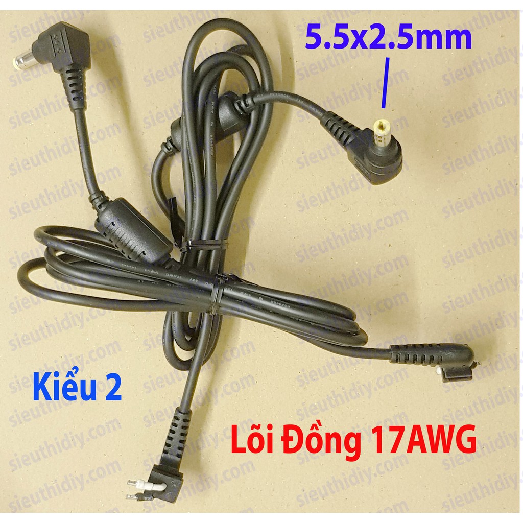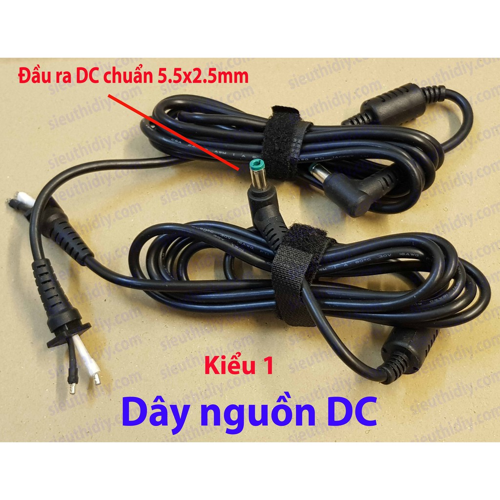+ Kiểu 1: Dây đồng trục lõi Đồng mạ Thiếc 16AWG dài 1.8m - Đầu 5.5x2.5mm - Đầu giắc DC gập 90 độ.