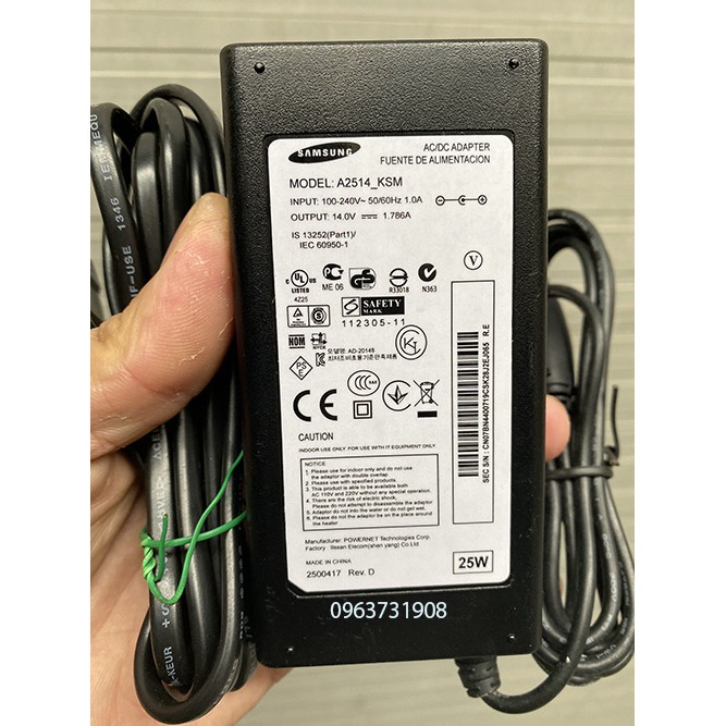 Tên sản phẩm: Adapter nguồn màn hình samsung 14V 1.786A