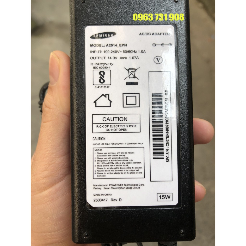 THÔNG SỐ KỸ THUẬT adapter 14.0v 1.07a samsung loại tốtHãng sản xuất : SAMSUNG