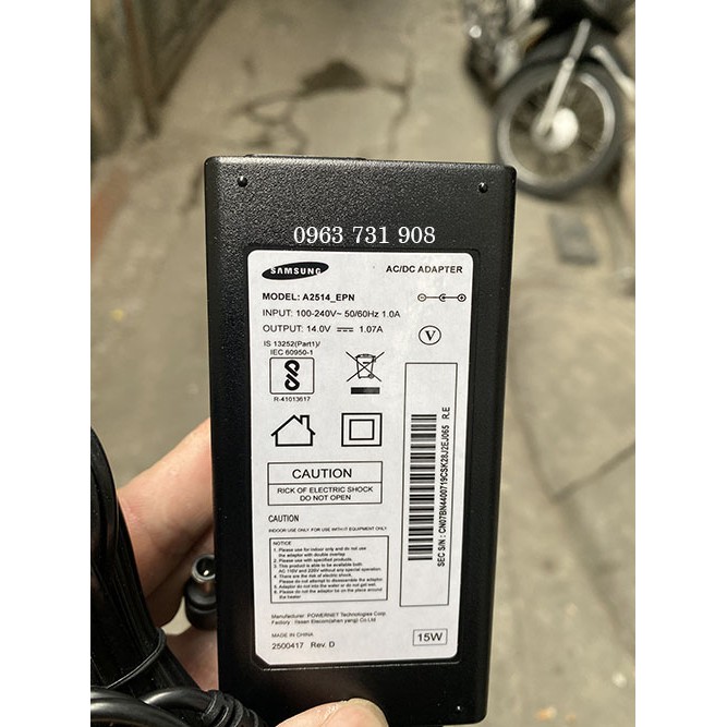 Chúng tôi xin giới thiệu sản phẩm dây nguồn màn hình samsung 14V-1.07A (xịn) chính hãngTHÔNG SỐ KỸ THUẬT Adapter SAMSUNG 14v 1.07a