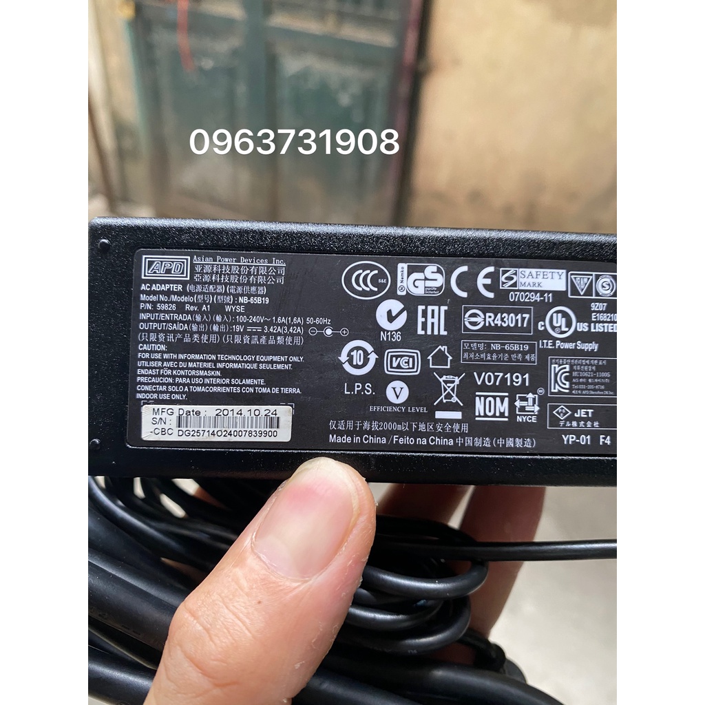* Điện Áp đầu ra: 19V