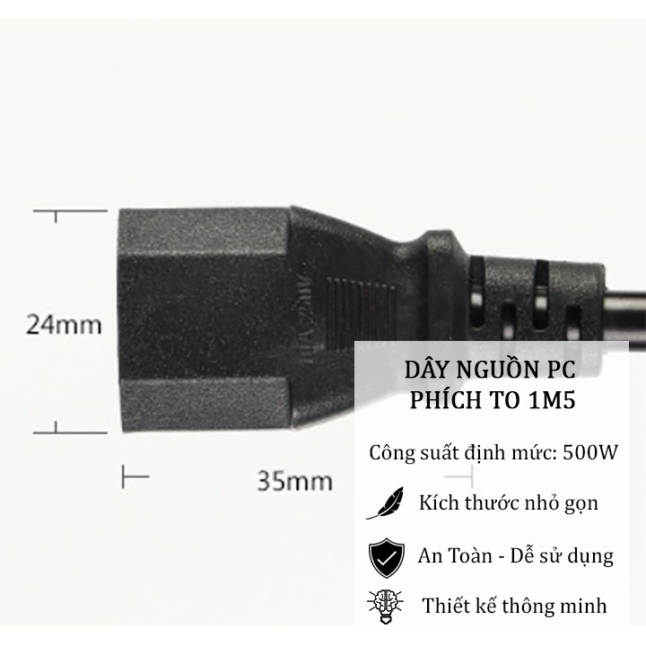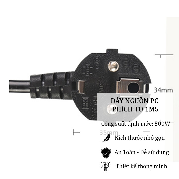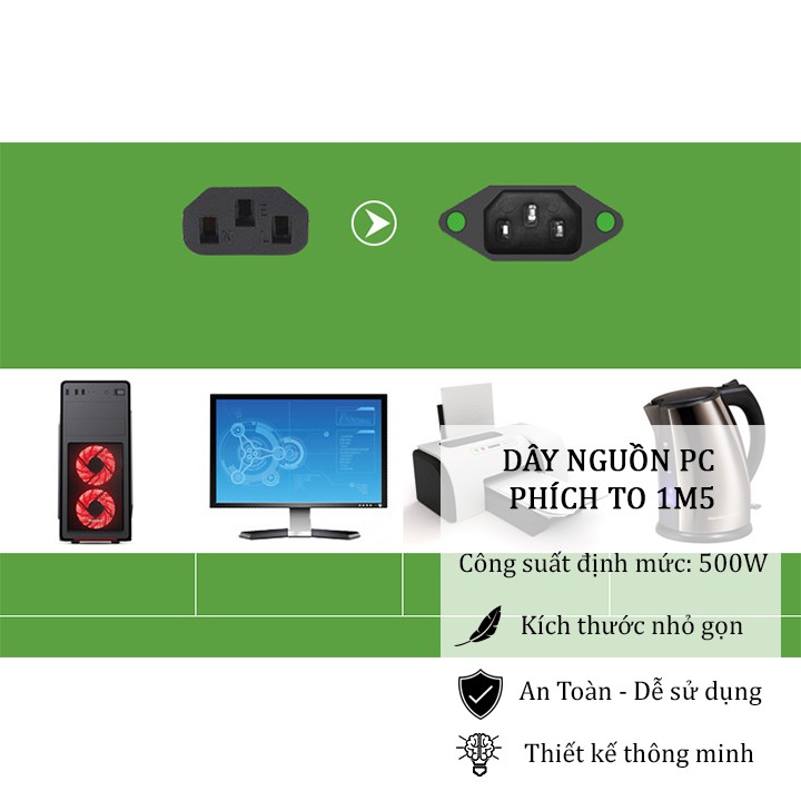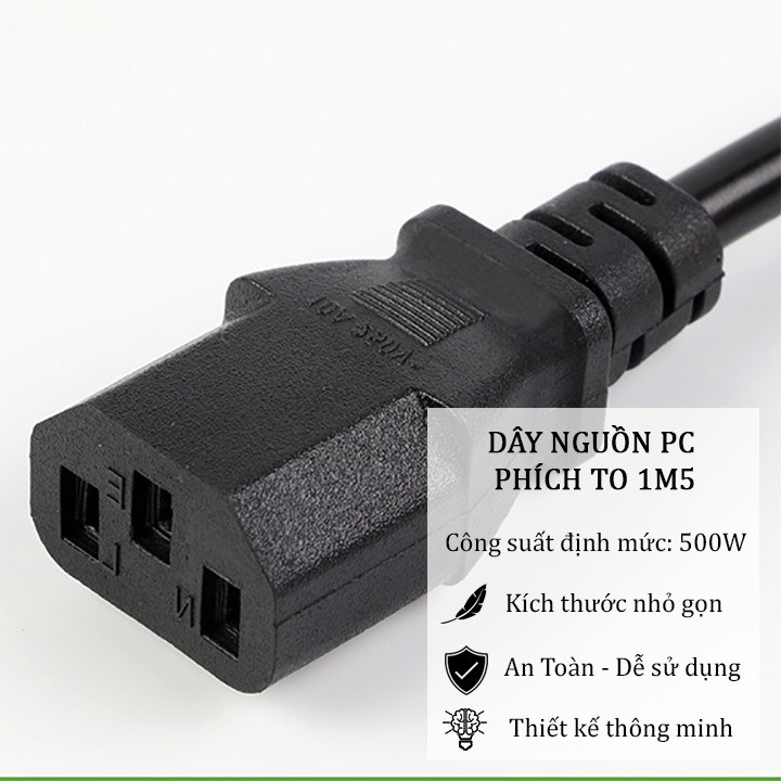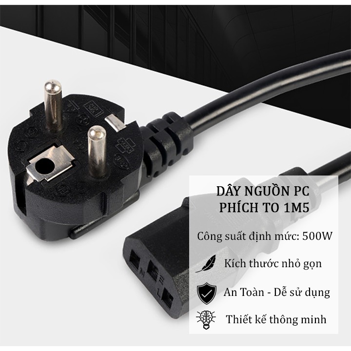 Dây nguồn máy tính bàn PC văn phòng nồi cơm điện 2 chấu 1,5m• DÂY NGUỒN PC PHÍCH TO 1M5
