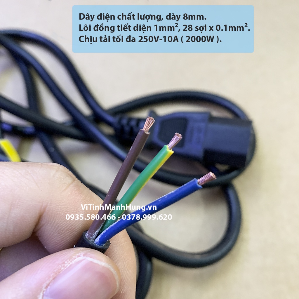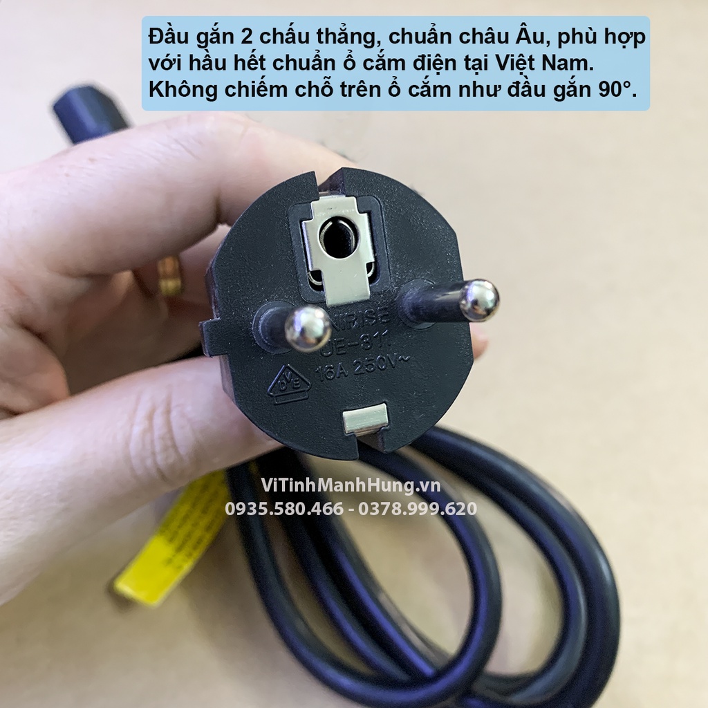 Máy tính & Laptop > Linh Kiện Máy Tính > Nguồn Máy Tính || Dây nguồn máy tính cho nguồn công suất lớn, đầu cắm 2 chấu thẳng chuẩn châu Âu, 1M8, 250V-10A.Còn hàng