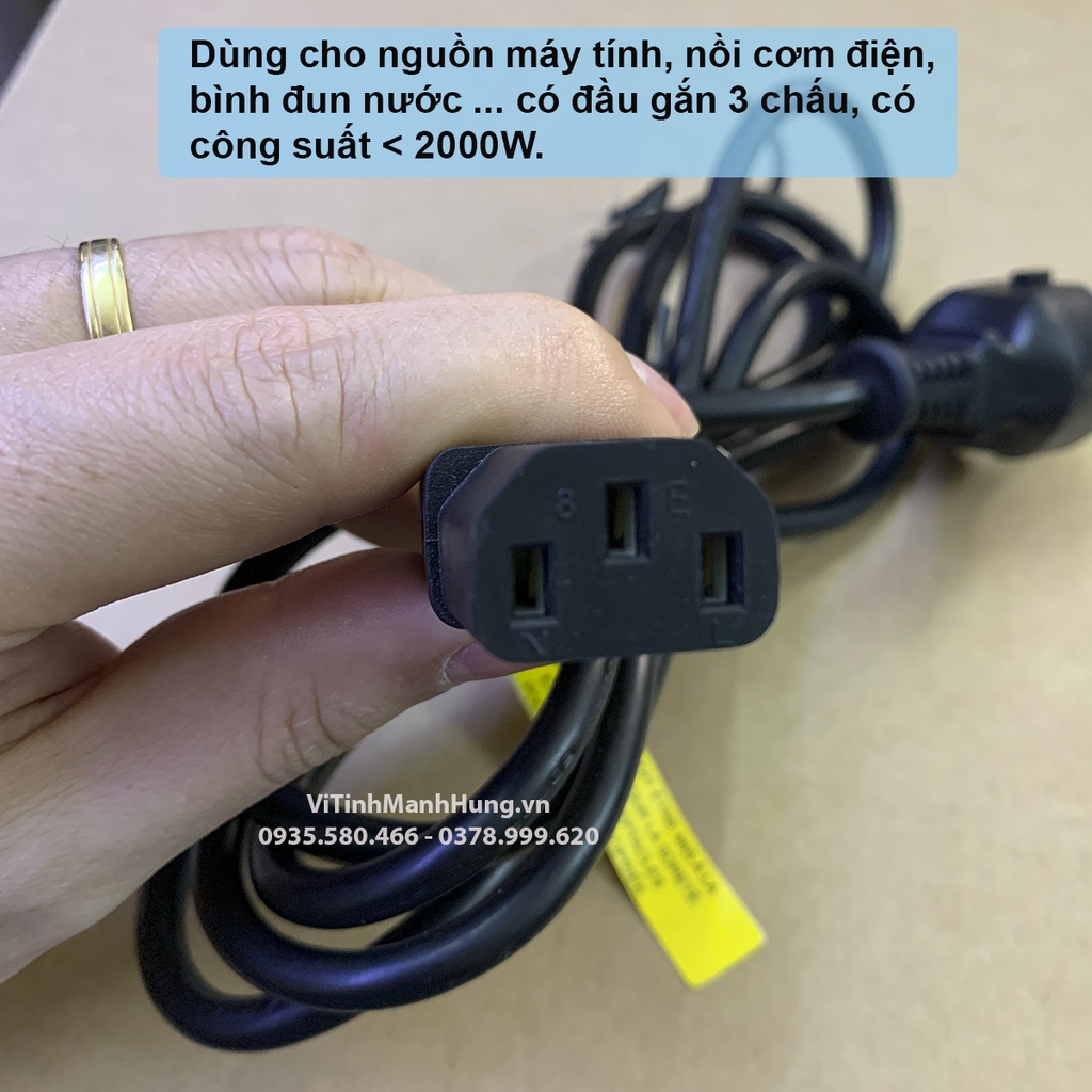 - Dùng cho nguồn máy tính, nồi cơm điện, bình đun nước ... có đầu gắn 3 chấu, có công suất < 2000W.