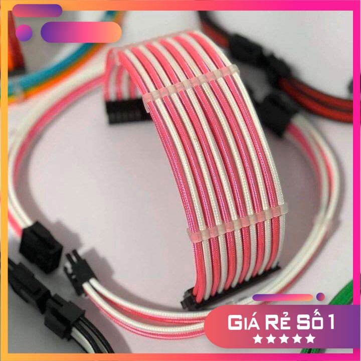 Máy tính & Laptop > Linh Kiện Máy Tính > Nguồn Máy Tính || Dây nguồn mix màu bọc lưới 24Pin- 8 pin -6Pin - 4Pin lõi 18AWG cho VGA và CPU (mix màu theo yêu cầu) - Trắng HồngCòn hàng
