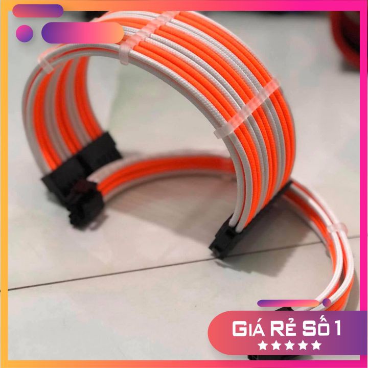 Dây nguồn mix màu bọc lưới 24Pin- 8 pin -6Pin - 4Pin lõi 18 AWG cho VGA và CPU (mix màu theo yêu cầu) - Trắng Cam
