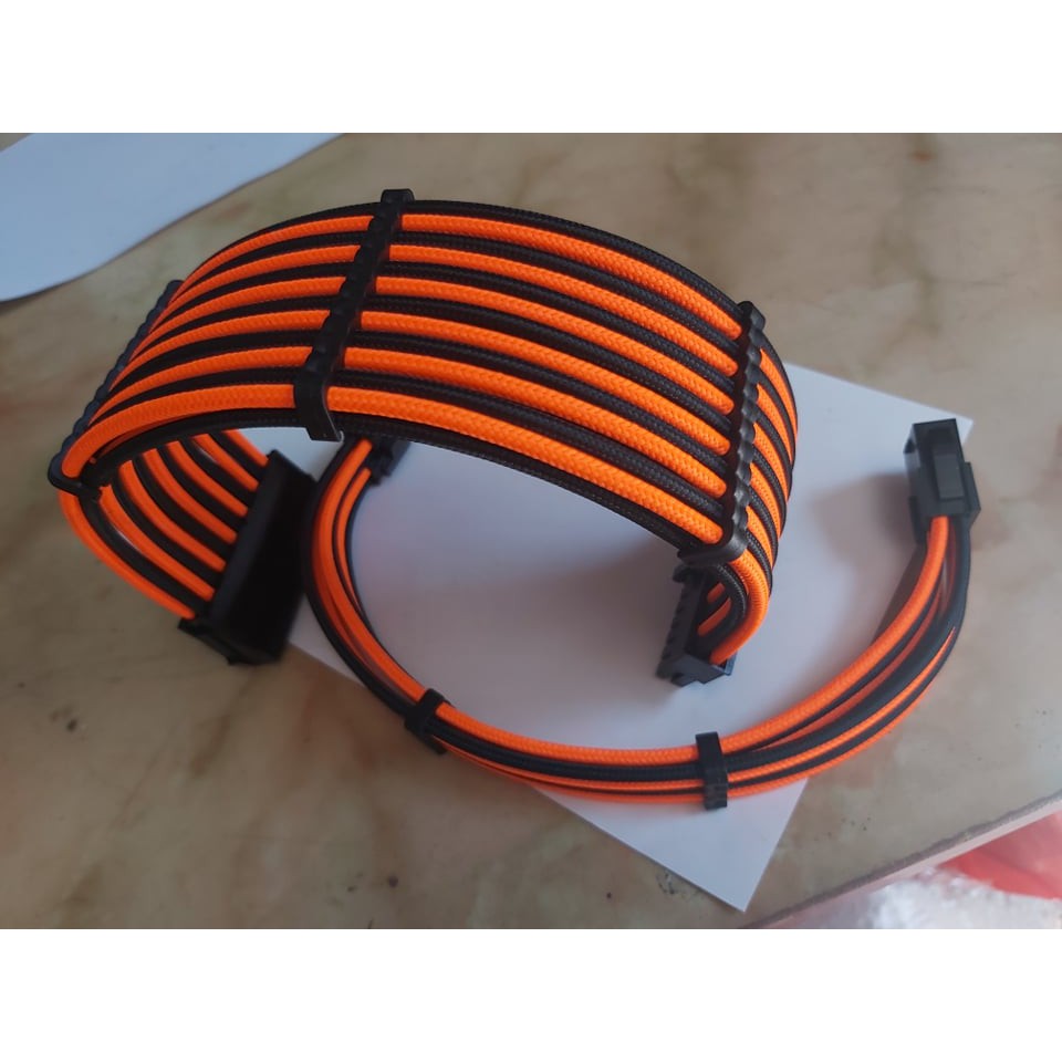 Giới thiệu Dây nguồn mix màu bọc lưới 24Pin- 8 pin -6Pin - 4Pin lõi 18AWG cho VGA và CPU (mix màu theo yêu cầu) - Đen Cam