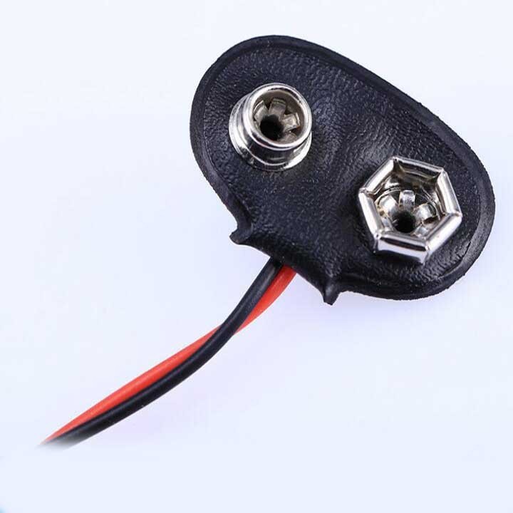 Dây nguồn Pin 9V: gồm hai đầu dây, một đầu bề ngoài vừa vặn lắp vào pin 9v và đầu còn lại là jack nguồn 6.3 mm kiểu dòng. Dây này thường dùng khiến dây nguồn cho mạch arduino uno.Dây nguồn Pin 9V