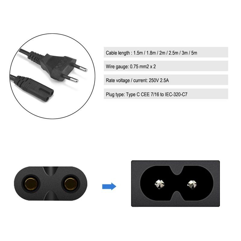 100% Thương hiệu Mới Phích cắm EU hình số 8 IEC C7 Cáp nguồn dây