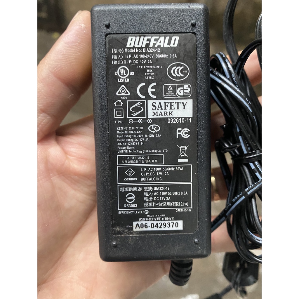 Thông số kĩ thuật trên cục nguồn wifi BUFFALO 12V chân kim